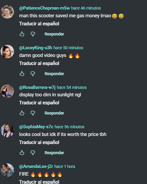 Comentarios de YouTube (Femeninos, usuarios con foto)